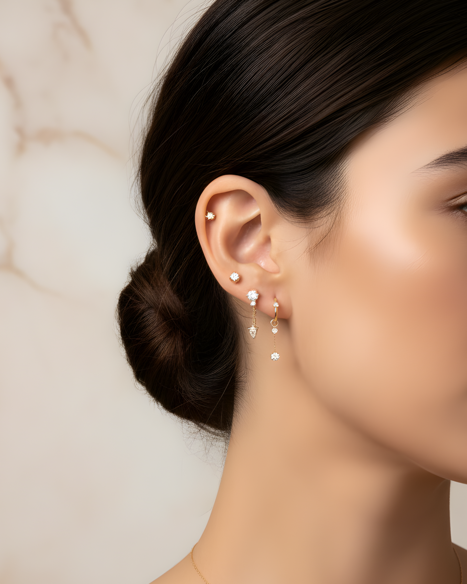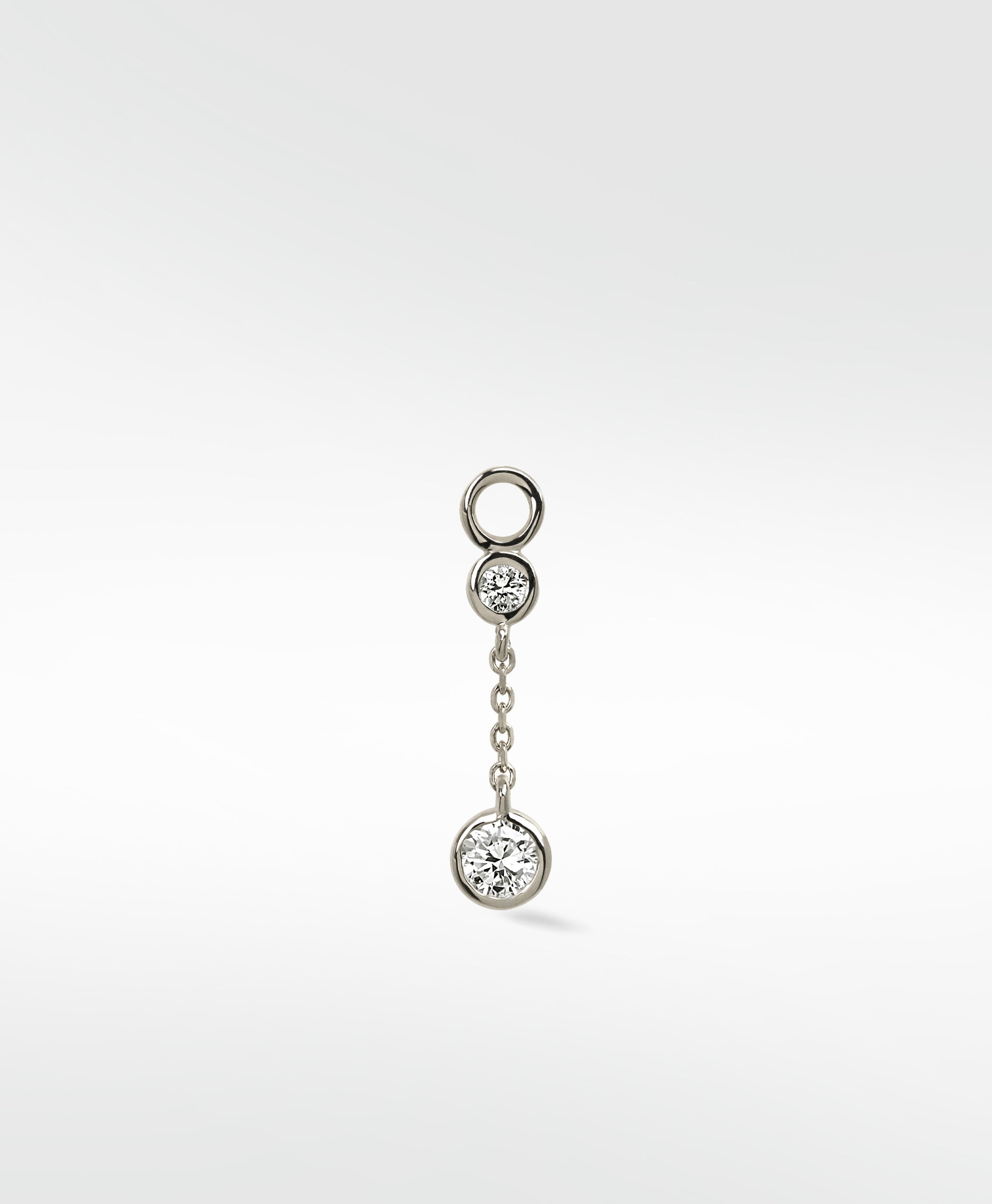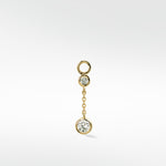 Delicate and elegant, this Double Diamond Chain features two sparkling diamonds on a fine chain, designed to attach to a hoop or a stud, creating a graceful, flowing silhouette perfect for day-to-night wear.