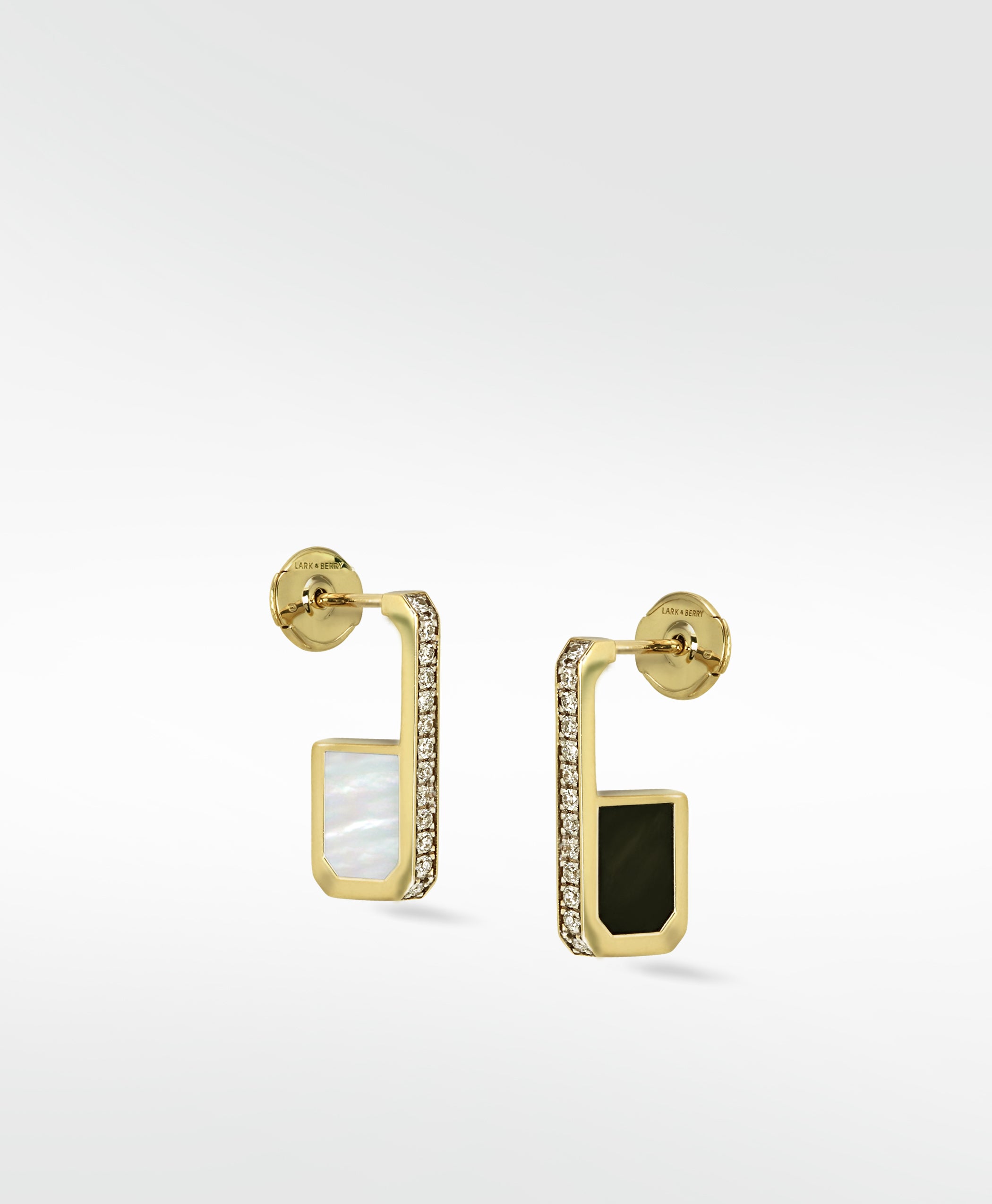 Choose your side with these Eclipsis Diamond Hoop Earrings - mother of pearl or black onyx? Do you prefer the brightness of the sun or the shadows of the moon? Maybe your mood will change as you go about your day? If so, no matter, our Eclipsis range is all about mixing it up - once a day, once a week? You do you. From the front, these abstract hoops offer a stunning, diamond-set view for the ultimate in new luxury.