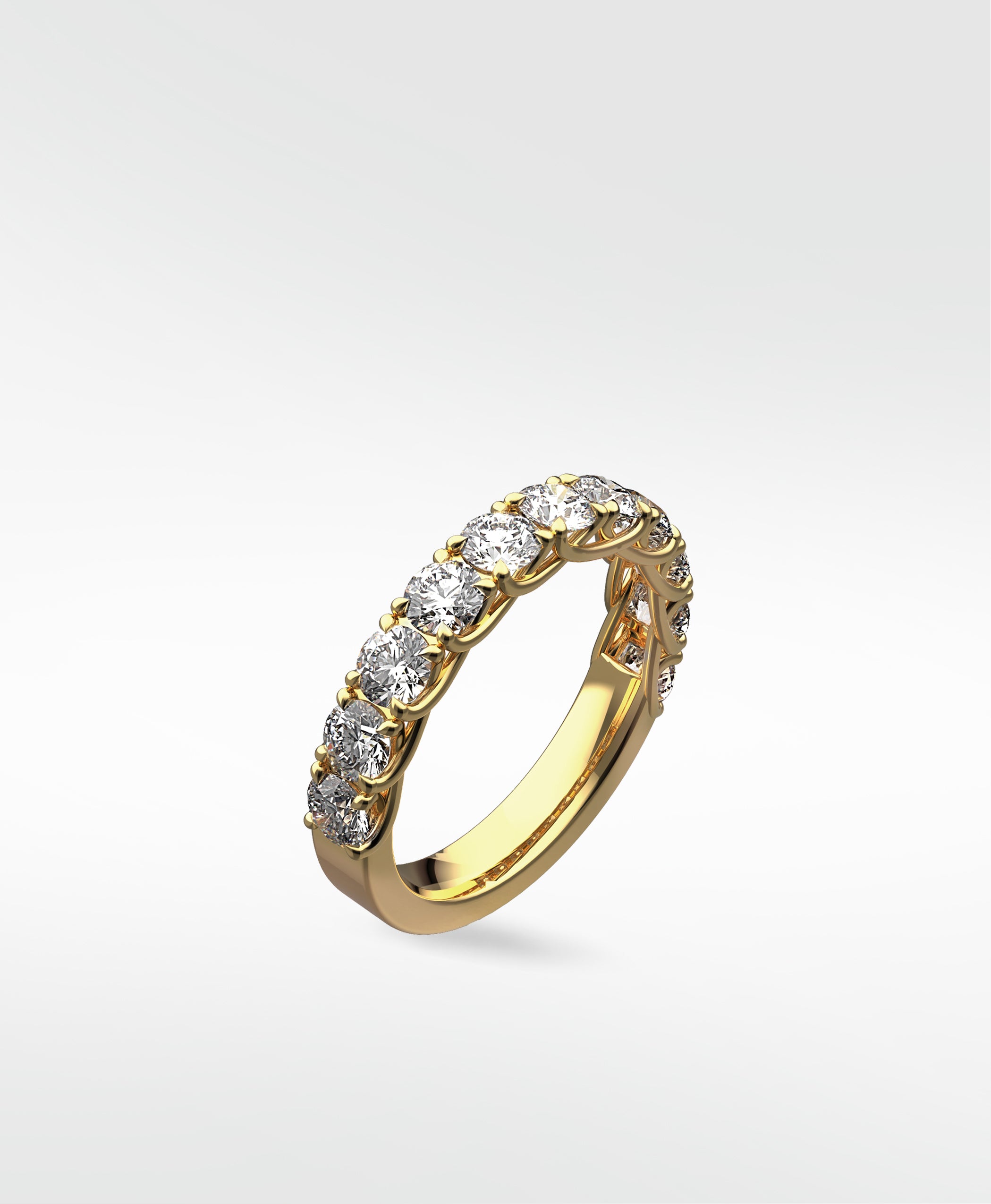 Open your heart to the exquisite Sequoia Diamond Eternity Ring, featuring brilliant cut lab diamonds and open settings to maximise their dazzling brilliance and unparalleled sparkle, this ring is sure to captivate and enchant. The through view offers gorgeous scalloped detail with overlapping claws, finished in a dramatic talon for a more refined look on a classic ring.