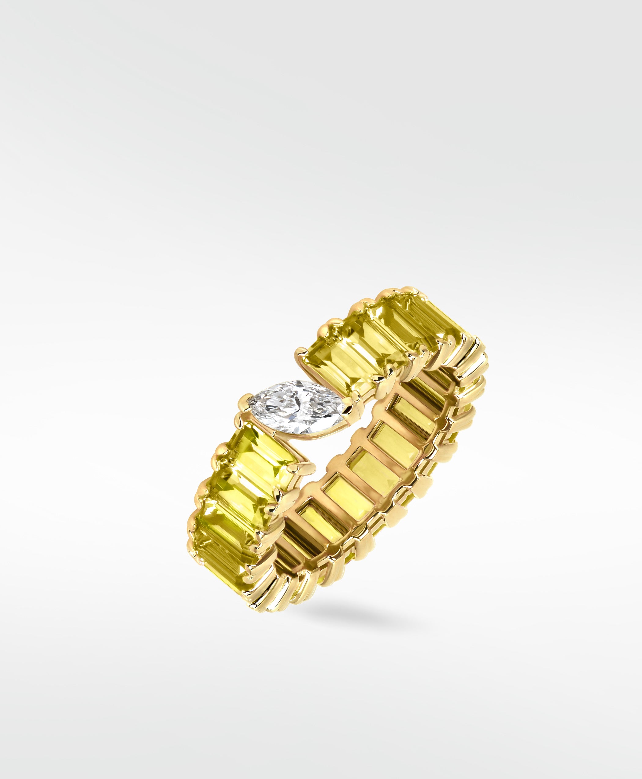 • A vibrant yellow sapphire eternity ring that stacks easily and adds a touch of timeless charm.