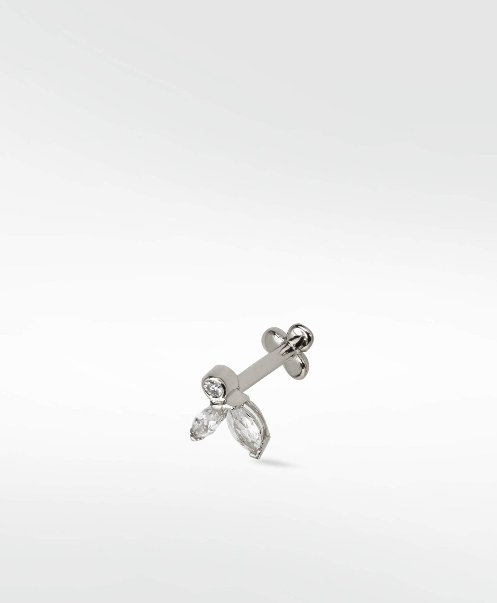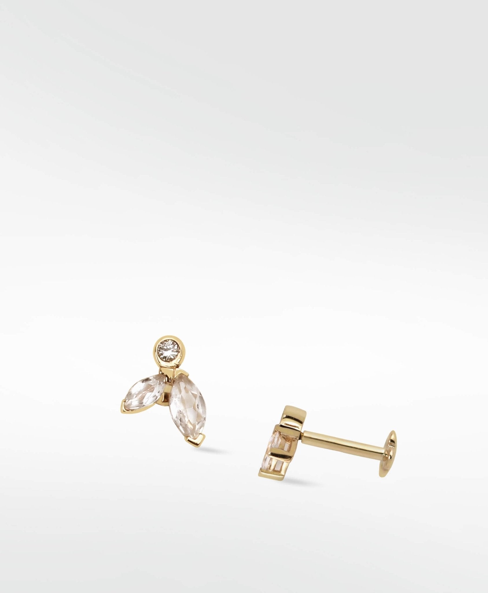Instead of wearing flowers in your hair, how about petals in your ear. Our Veto Petal Labret Earring has a floral elegance that will add a delicate touch to your style. Set with perfect cultured diamonds and sapphires in 14k gold, this piece is designed to be pierced with.