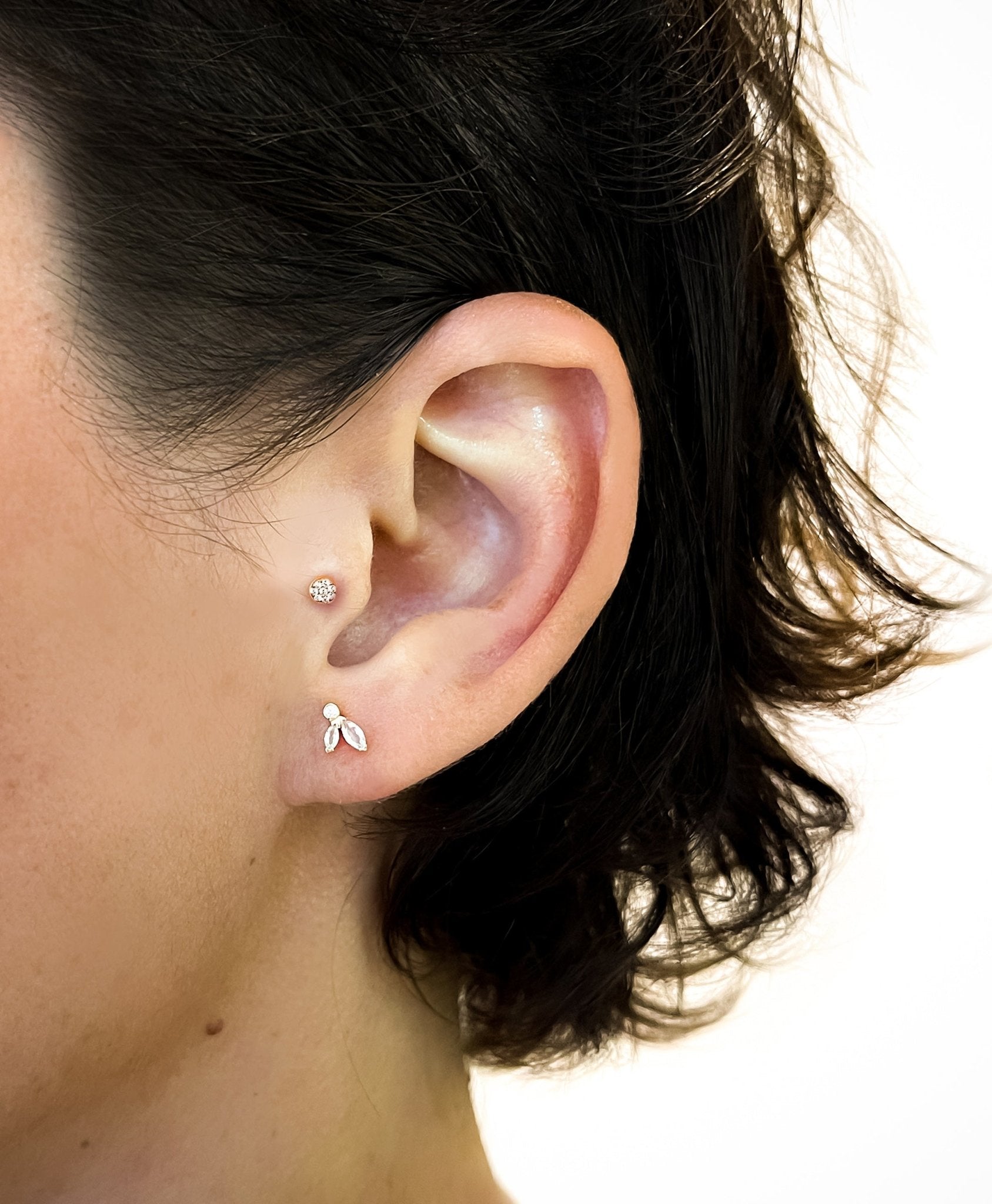 Our studs are designed to fit most lobes, upper lobes, helix, flat, and tragus piercings beautifully.